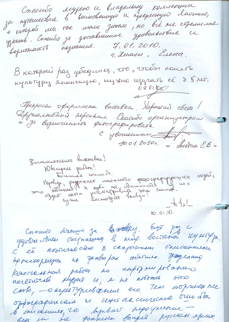 Восхищенные отклики из многостраничной книги отзывов посетителей выставки